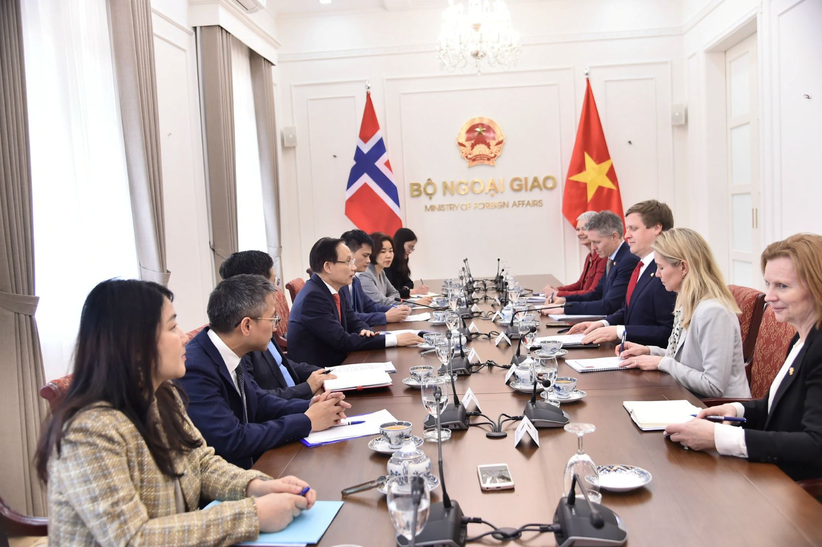 Vui mừng được gặp Bộ trưởng Lê Hoài Trung đúng vào dịp hai nước kỷ niệm 55 năm thiết lập quan hệ ngoại giao, Bộ trưởng Na Uy Åsmund Aukrust đánh giá cao vai trò, vị thế, chính sách đối ngoại chủ động, tích cực của Việt Nam, coi Việt Nam là bạn bè và đối tác tin cậy của Na Uy tại khu vực Châu Á – Thái Bình Dương; khẳng định chuyến thăm Việt Nam lần này diễn ra ngay sau thành công của Đại hội toàn quốc của Đảng Cộng sản Việt Nam lần thứ XIV, thể hiện sự tin cậy cao về chính trị, sự quan tâm của Chính phủ Na Uy tới việc thúc đẩy hợp tác thực chất, toàn diện hơn nữa với Việt Nam, tiềm năng và dư địa hợp tác hai bên còn rất lớn trên cả bình diện song phương và đa phương.